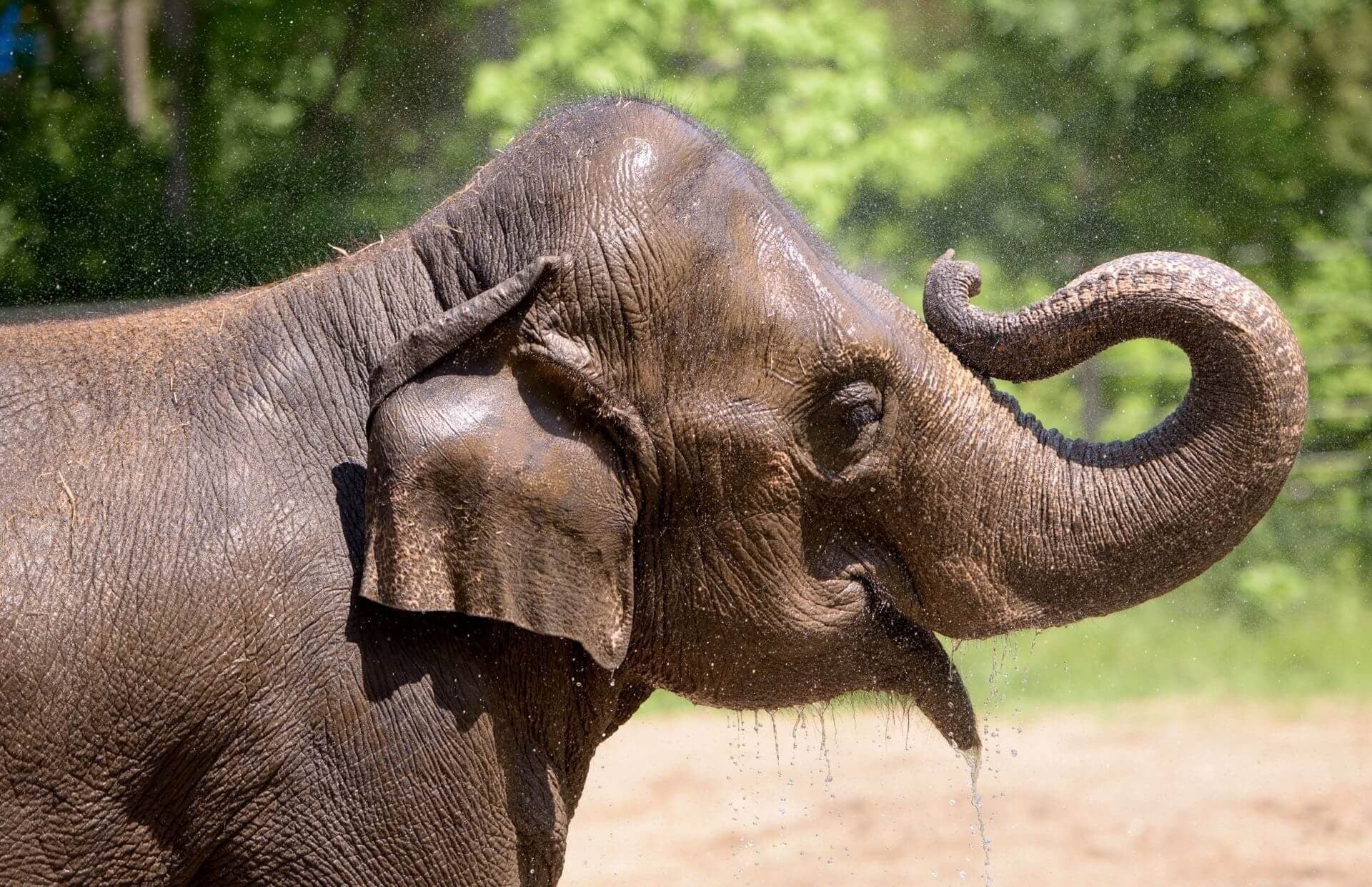 トレーナーが市民センターの外でゾウを洗っていたところ、通りがかった車の爆発音に驚いて逃げたという。