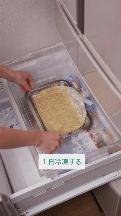 溝をつけたら、バットなどに置いて1日冷凍します。