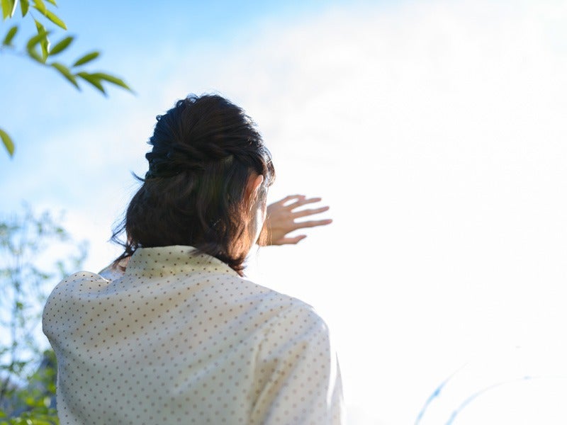 「紫外線は散乱しやすい性質があります。そのため、たとえ紫外線を100%カットできるような素材の傘を使っていたとしても、散乱・反射によって紫外線が横方向の周囲から入ってしまうと言われています。頭や顔への紫外線の侵入を防ぎ、UVカット効果を得るには、傘をなるべく深くさすようにしましょう。