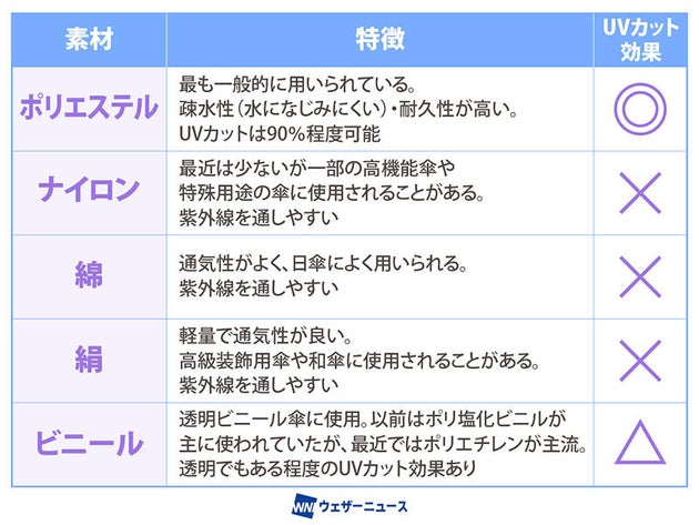 また、いわゆる透明のビニール傘ですが、素材にはある程度のUVカット効果があります。透明だからといってUVがカットできない、ということはないのです。陽ざしの熱は避けられませんが、さすことである程度のUVカット効果が期待できます」(石垣先生)