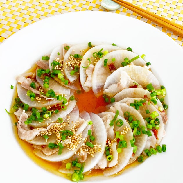 【レンジで簡単!】ピリ辛味がクセになる!大根と豚バラの重ね蒸し