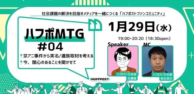 「遺族取材」「メディアスクラム」の問題をテーマにした「第4回ハフポストミーティング」を、2025年1月29日(水)午後7時に、東京都内で開催します。