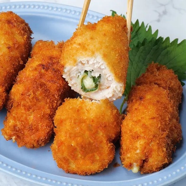 【大葉チーズ系はやっぱりおいしい】鶏むねでくるくる巻いたおいしいロールカツ!