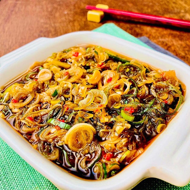 調味料に漬けるだけで作れる、無限長ねぎ!ご飯にのせても、ラーメンのトッピングにのせても◎