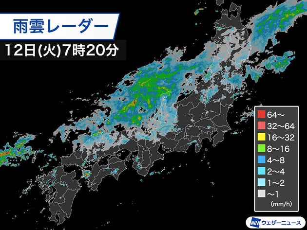 今日12日(火)は、活発な雨雲が北に離れ、九州は大雨の峠を越えています。