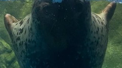 「芸術的すぎる」とコメントを添え、ゴマフアザラシの“ココア”が水槽内から水面に噴水のように3方向に水を噴き出している様子の写真を投稿しました。
