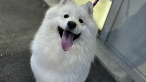 投稿したのは、サモエドのおもちさん(@0mochi423)。サモエドの女の子、おもちちゃんとの日常を中心にポストしています。