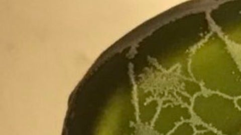 写真のパルムの表面にはひび割れのような線が走り、まるで生き物の組織や鉱石の文様のような、不思議なパターンが広がっています。