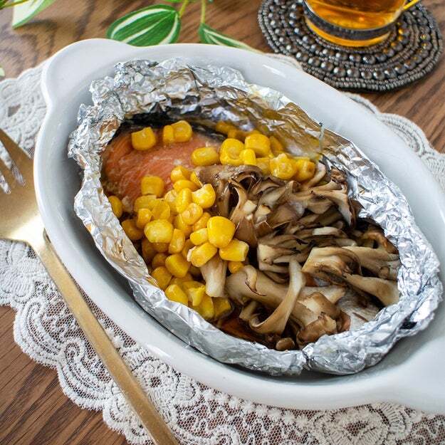 【サケ買ったら絶対コレ!】「週7で食べたい!」「ガリバタが最高♡」サケとまいたけのホイル焼き