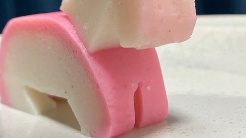 しかし、頭と身体をつなぐために爪楊枝を使ったことで、一角を持つ“ユニコーン”のような姿になってしまったようです。かまぼこの白とピンクのファンシーな色合いも相まって、さらにユニコーンらしさが際立っているようにも見えます。