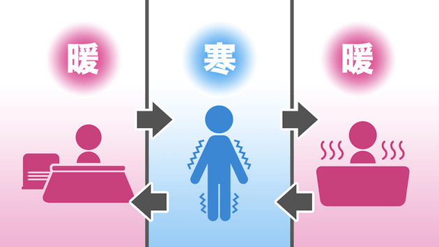 「ヒートショックは急激な温度変化が原因で、血圧が短時間に大きく変動することによって引き起こされるダメージのことです。