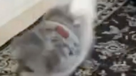 実はこの投稿には“前日談”も。引用元として紹介された別の投稿では、トイレに少し失敗してしまい、パイプ椅子の下に隠れるもじゅさんの姿が写されていました。