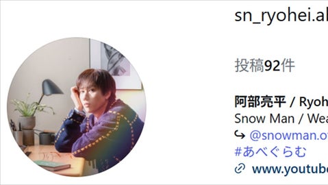 Snow Manの阿部亮平さんが、1月25日にインスタグラムを更新。