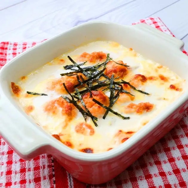2. ホワイトソース不要!火も使わない「明太子餅グラタン」