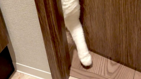 「大丈夫だよ、むぎ。 トイレ来ただけだよ。いなくならないよ」というコメントとともに、愛猫のむぎちゃんがトイレのドアの隙間から顔をねじ込んでいる写真を投稿。その表情は真剣そのもの。まるで飼い主さんが消えてしまわないか必死に監視しているようです。