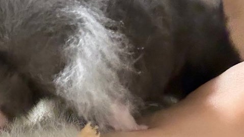 抱っこしているときに撮影された1枚とのことで、ふわふわの後ろ姿の中央に、小さな丸い“ポッチ”が見えます。その形がマッチ棒の頭ように見え、「刺さってるみたい」と言われたのだそう。