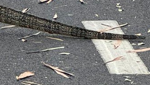 写っているのは、道路を横切る巨大なトカゲのような生き物。体は道路の半分を覆うほどの大きさで、思わず足がすくんでしまうような迫力があります。