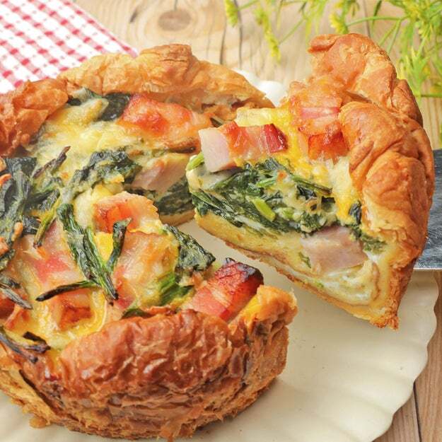 ほうれん草とベーコン、卵液、チーズを流し入れて焼けば、外はサクッ、中はじゅわっとバターが香る、クロワッサンならではのリッチな風味のキッシュに仕上がります。