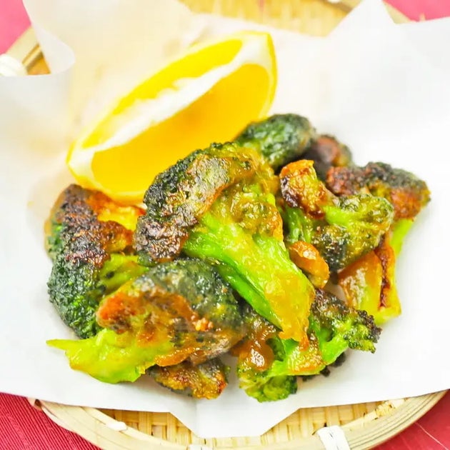 ブロッコリーをめんつゆに漬けて片栗粉をまぶし、カリッと焼くだけ。