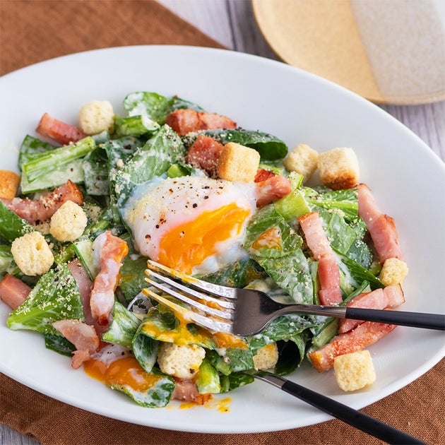 小松菜と温泉卵のシーザーサラダ