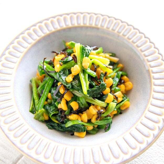 ほうれん草とコーンの塩昆布バター和え