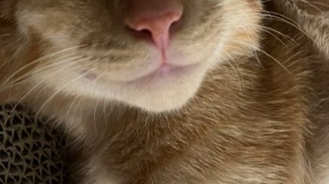 「(⌒▽⌒)」という顔文字そのままの表情で眠る猫の姿が、SNSで注目を集めています。