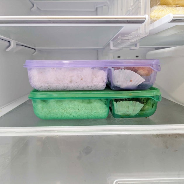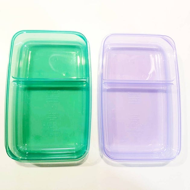 グリーンとパープルのタッパーがセットになっています。