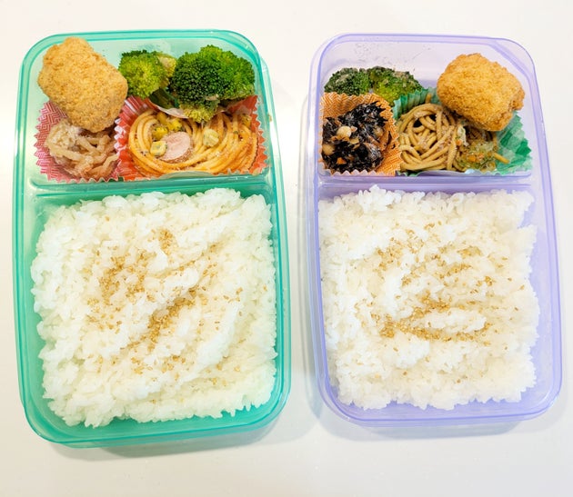 小さい方の仕切りには、冷凍食品のパスタ、野菜のおかず、クリームコロッケとブロッコリーを入れられました。