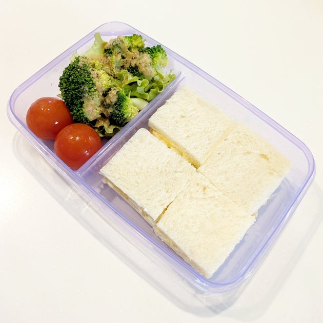 大きい仕切りの方には、8枚切りの食パンで作ったサンドイッチがすっぽり収まりました。