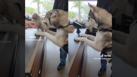 投稿したのは、ハスキー、ジャーマン・シェパード、マラミュート、サモエドのミックス犬「コスモ」くんの日常を発信するアカウント「The SalaShusky Cosmo」(@thesalashusky.cosmo)。