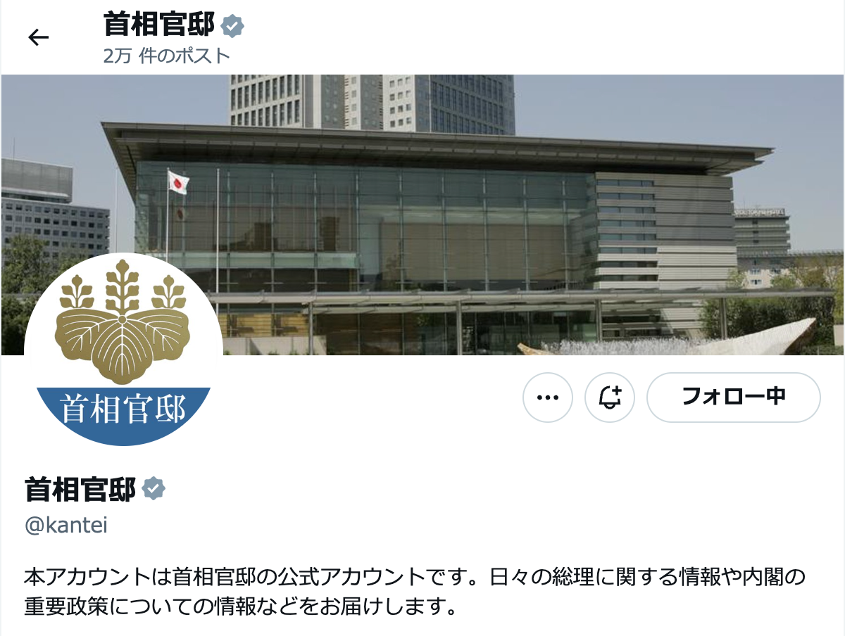 首相官邸の公式Xアカウントは、首相に関する情報や内閣の重要政策などを伝えるのが目的で、フォロワー数は約160万に上る。
