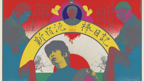 斬新な演劇ポスターを次々と生み出したことでも知られる横尾忠則(1936-)は、大島渚監督から指名を受け、「新宿泥棒日記」で主演を務め、自ら映画ポスターも制作した。